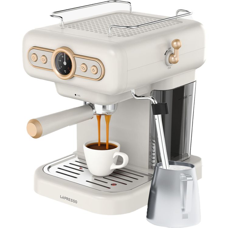 LePresso Coffee Machine with 1.2L Water Tank Capacity, 950W Rated Power, 15 Bars Pump Pressure, Washable Drip Tray, Steam Control - White