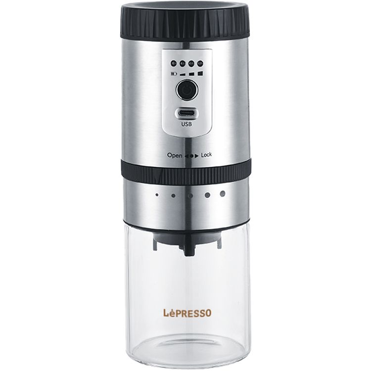 LePresso Ceramic Burr Automatic Grinder, Type-C Charging Port, 250g Storage, Stainless Steel Material, x2 800mAh Battery Capacity - Silver