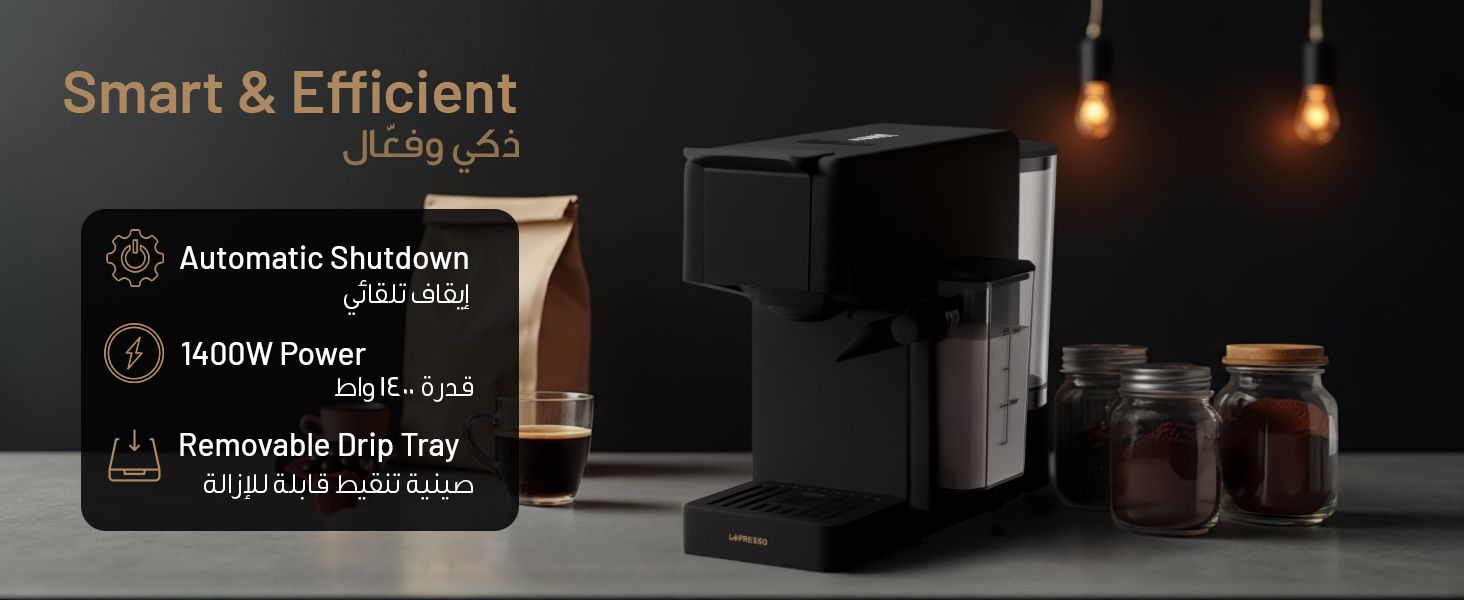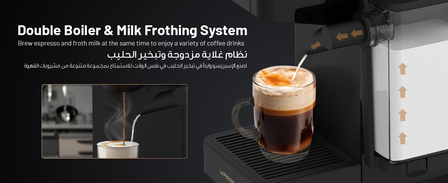 LePresso Crema Pro Multi-Capsule Coffee Machine with Double Boiler, Milk Frothing System, Capsule Holder, Ground Coffee Holder, 200mL Milk Tank Capacity, 850mL Water Tank Capacity, 3-Pin UK Plug Power, Automatic Shutdown - Black