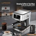 LePresso Digital Coffee Machine with 20 Bar Pressure Pump, High Pressure Frothing, Pre-Brew System, 1100W Rated Power, 1.5L Tank Capacity - Black