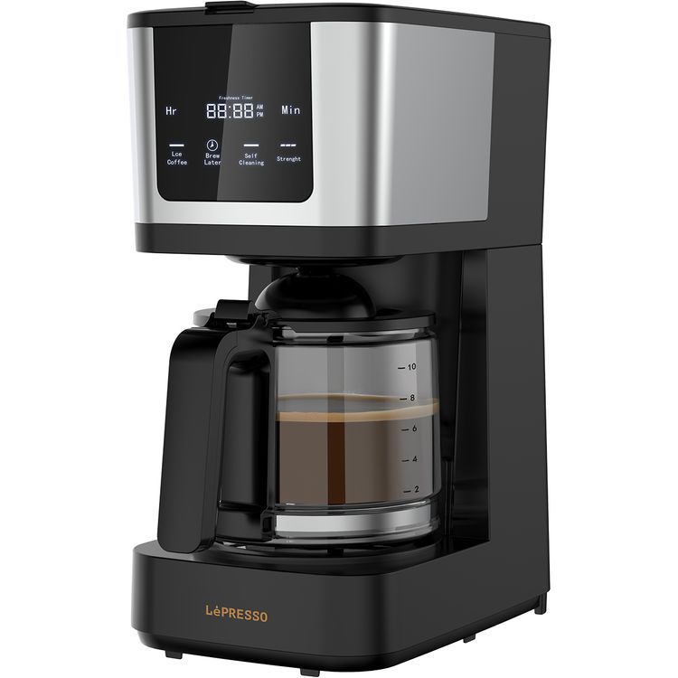 LePresso Drip Coffee Machine with Interactive Touch Display, 400mL Travel Mug Capacity, 10 Cups Coffee Carafe, Washable Nylon Filter, Keep Warm Function, Quick Drew, 1.38L Water Tank Capacity - Black