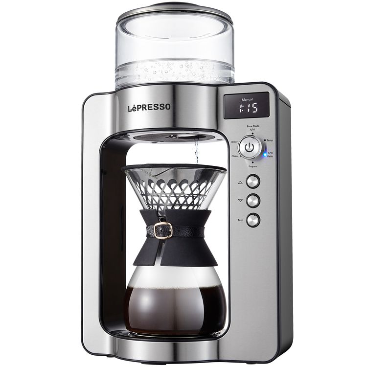 LePresso Dual Mode Coffee Drip Machine with Automatic Descaling, Customized Setting, 650mL Glass Carafe Capacity, 1L Water Tank Capacity, UK 3-Pin Plug, Golden Cup Standard - Silver