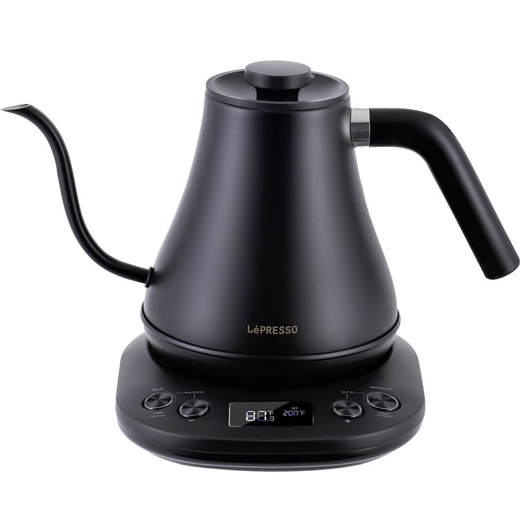 LePresso Electric Pour-Over Kettle with Digital Display, Boil Dry Protection, Keep-Warm Function, Brew Stopwatch Mode, Adjustable Temperature, 800mL Capacity - Black