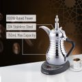 LePresso Arabic Coffee & Tea Dallah with 750mL Capacity, 800W Rated Power, Stainless Steel, Over-Heat Protection, Keep Warm Feature - Silver