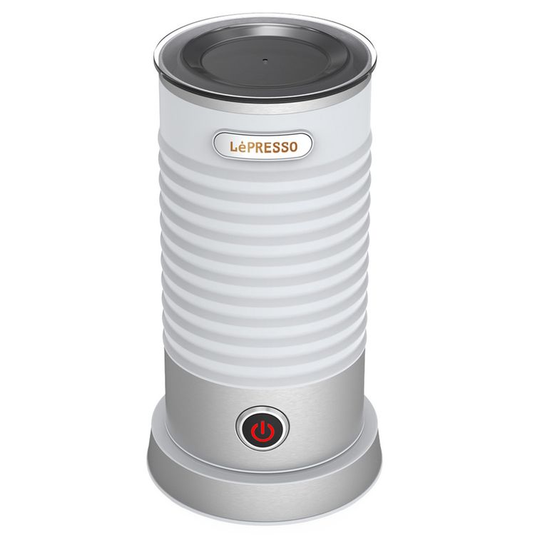 LePresso Hot & Cold Milk Frother, Portable & Lightweight Design, 110mL Frothing Capacity, 200mL Regular Heating Capacity, Safe & Reliable, One-Touch Operation, Non-Stick Material - White