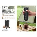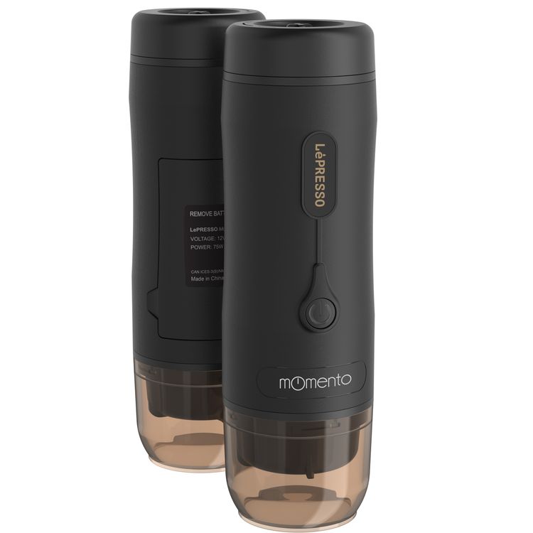 LePresso Momento 2.0 Portable Espresso Coffee Machine, Ground & Nespresso Compatible, 75W Power, 2500 mAh Battery Capacity, 2-3 Hours Re-Charge Time, 4 Single Shots Fully Charged Working Time - Black
