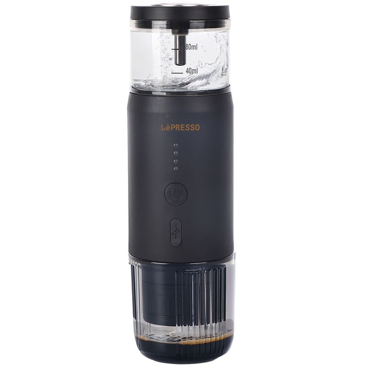 LePresso Portable Espresso Machine, Food Grade Stainless Steel, 2500mAh x3 Battery Capacity, 80mL Water Tank Capacity - Black