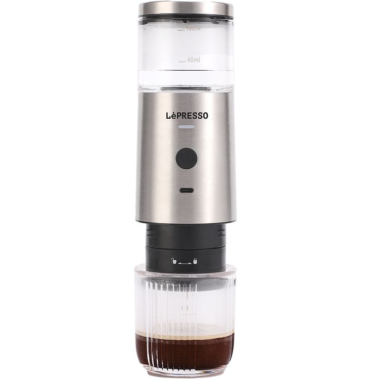 LePresso Stainless Steel Portable Espresso Maker Powder and Nespresso Pods with 9 Bar Pressure, 100mL Water Tank Capacity - Silver