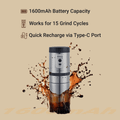 With a 1600mAh battery, you can use the gadget for 15 grind cycles with a full battery. After that, you can set it to charge with a Type-C charging port and wait as it recharges quickly, in 2 to 3 hours.