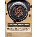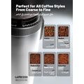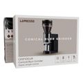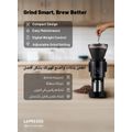 LePresso Precision Conical Burr Grinder with Digital Weight Control, Touch Display, 150W DC Motor Rated Power, 220-240V Rated Voltage, 50/60Hz Rated Frequency, 400g Bean Hopper Capacity, 90g Ground Coffee Cup Capacity, 3-Pin UK Plug, ABS & 304 Stainless Steel Materials - Black