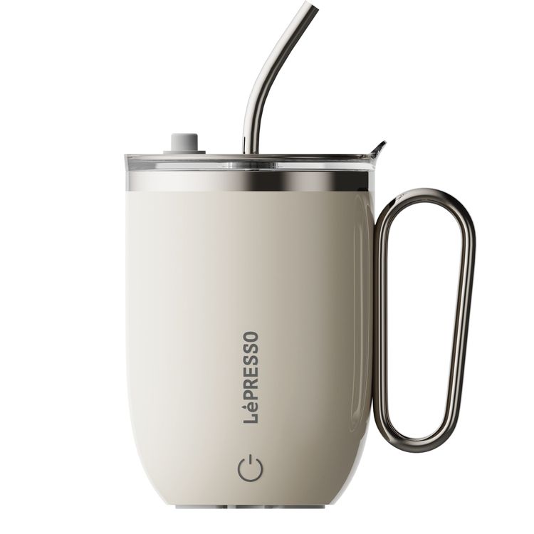 LePresso Sip Spin Magnetic Auto-Stirring Mug with Touch Button, 420mL Capacity, 300mAh Battery, 30s Mixing Time, USB-C Charging Port, Leak-proof Lid, Thermal Insulation, Durable & Easy-to-Clean Design - White