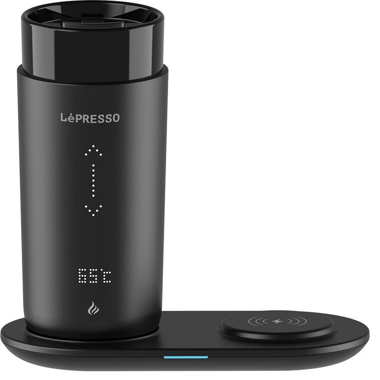 LePresso Smart Travel Heating Mug, Wireless Charging Base, Temperature Control, Real-Time Display, Leak-Proof Design - Black