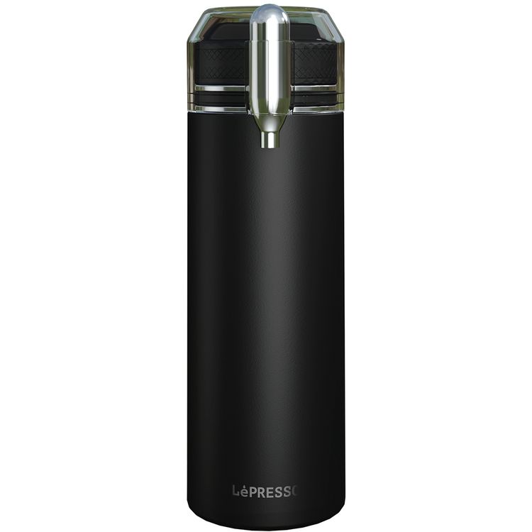 LePresso Sparkling Water Bottle with Double-Wall Vacuum, 750mL Bottle Capacity, 500mL Sparkling Water Capacity, Ceramic-Lined Interior, Durable & Easy-to-Clean - Black