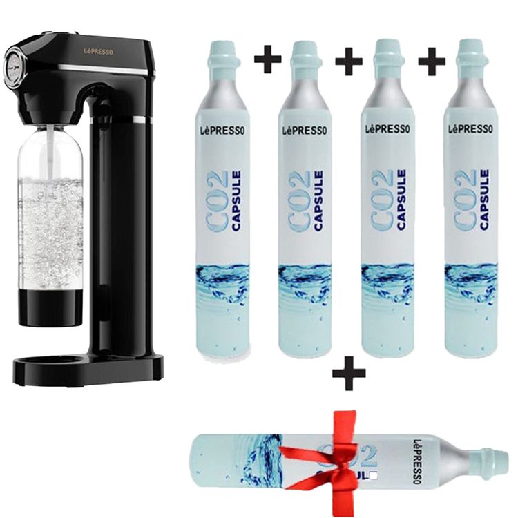 - Items in the Bundle: Lepresso Sparkling Water Maker, 4 CO2 Capsules, 1 Free CO2 Capsule