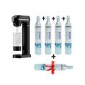 Lepresso Sparkling Water Maker and 4+1 x CO2 Capsules Bundle, 1L Sparkling Water Maker Capacity, Adjustable Fizz Pressure, Efficient Carbonation, 0.6L Capsule Capacity, Carbonates up to 500 Cups of Beverages, Safe & Without Gas Leakage - Black / Silver