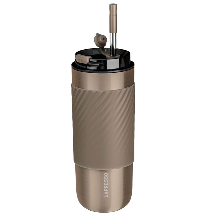 Lepresso Thermal Tumbler with Infusion Filter, 520ml, Reusable Straw Included, 10 Hours Keep Cold, 8 Hours Keep Warm, Tea Filter Component, Stainless Steel Body, Lightweight & Portable - Gold