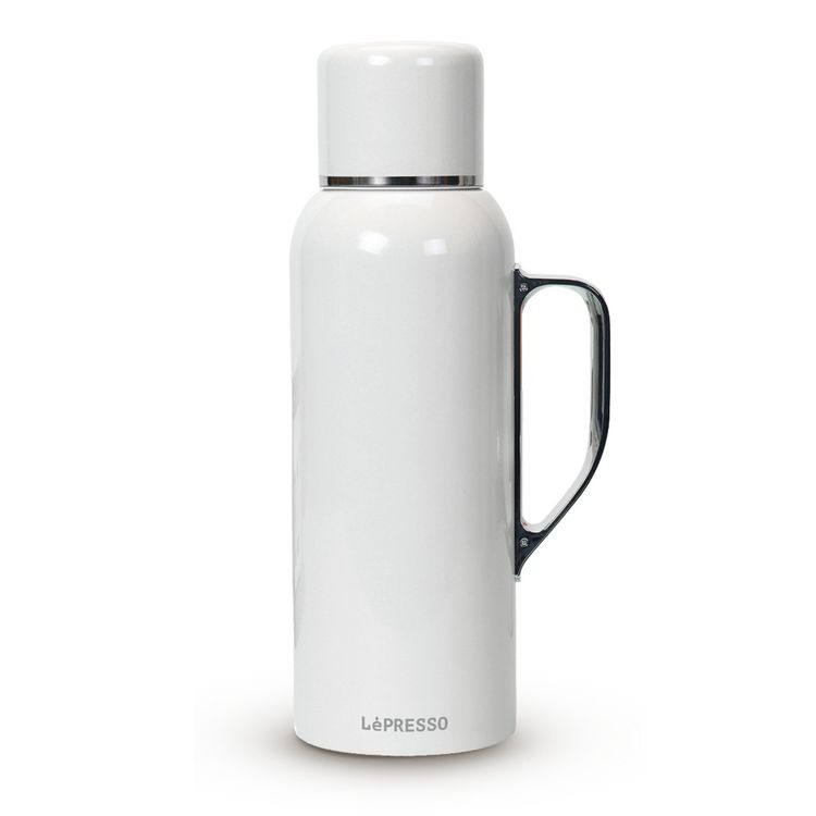 LePresso ThermoSense 850mL Stainless Steel Vacuum Insulated Bottle with Mechanical Temperature Gauge, 10-12 Hours Heat Retention, Stainless Steel SUS 316 Material - White