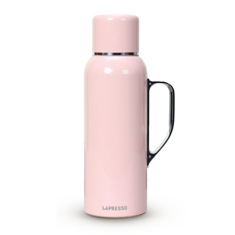 LePresso ThermoSense 850mL Stainless Steel Vacuum Insulated Bottle with Mechanical Temperature Gauge, 10-12 Hours Heat Retention, Stainless Steel SUS 316 Material - Pink