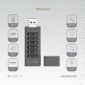 Levelo Lockvault Digital 128GB Encrypted USB Flash Drive with USB-A 3.1 Gen 1 Connector, 160MB/s Reading Speed, 120MB/s Writing Speed, AES256 Encryption Method - Gray