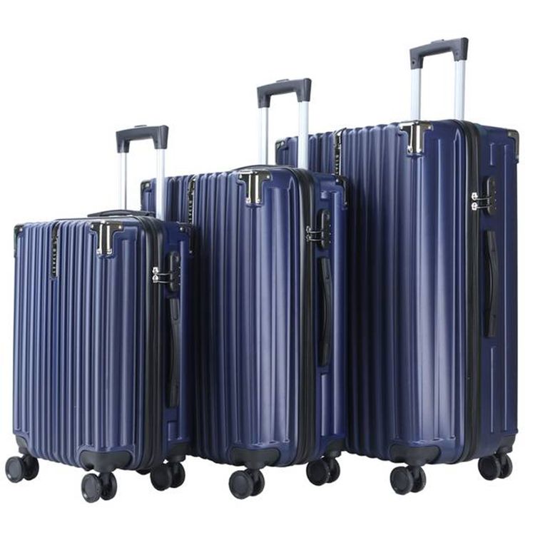 Levelo 3-Set ABS Luggage with Built-in Weighing Scale, Combination Lock, Iron Trolley, Double Wheels, Impact-Resistant Corners & Shock-Resistant, PP & Soft Rubber Handle - Dark Blue