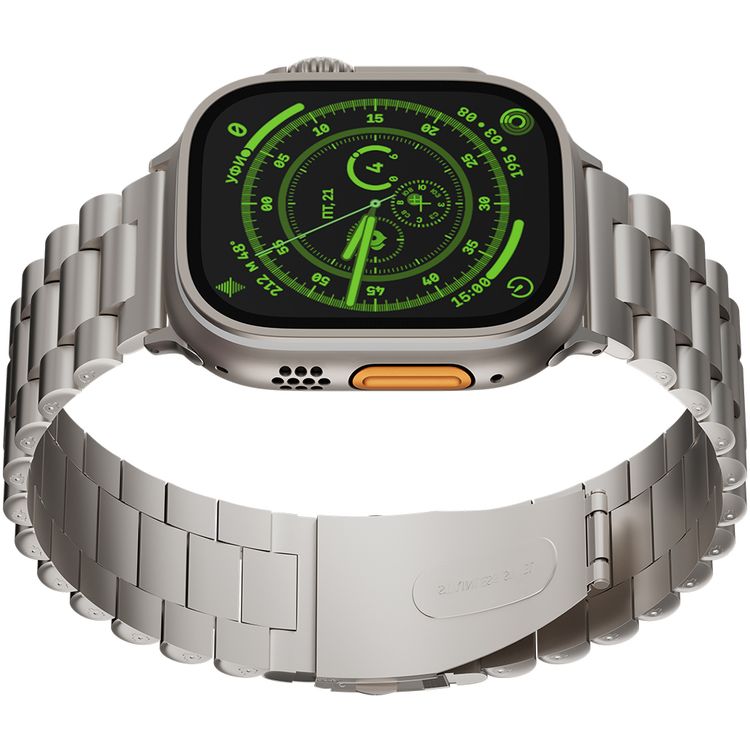 Levelo Daytona Watch Strap with Adjustable Links for Apple Watch 49/45mm, Anti-Oxidation Technology, Compatible with SE, Series 8, 7, 6, 5 & 4, Stainless Steel with Premium Metal Finish - Starlight