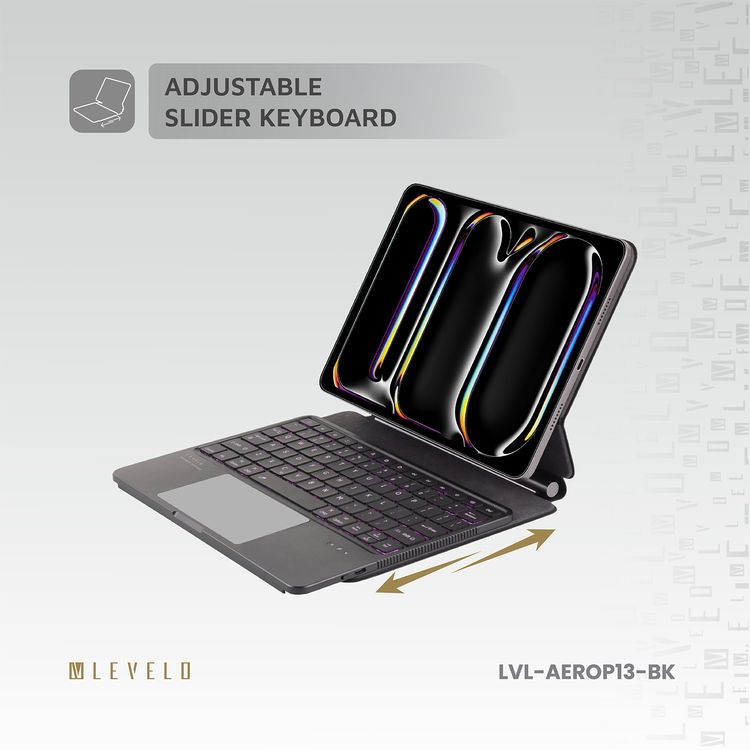 Levelo AeroBoard Pro Saffiano Leather Wireless Keyboard for iPad Pro 13" 2024, Stainless Steel + Rubber Finish, 500mAh Battery Capacity, Type-C Charging Interface, Up to 320 Hours Working Time, 7 Color Light Modes - Black