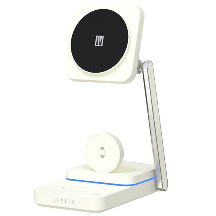 Levelo Aurora 3-in-1 Wireless Charger with Strong Magnetic Force, 90° Rotation, 15W Fast Charging, Auto Detecting Object, Overcharge Protection - White