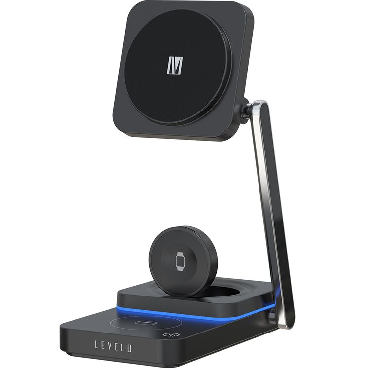 Levelo Aurora 3-in-1 Wireless Charger with Strong Magnetic Force, 90° Rotation, 15W Fast Charging, Auto Detecting Object, Overcharge Protection - Black