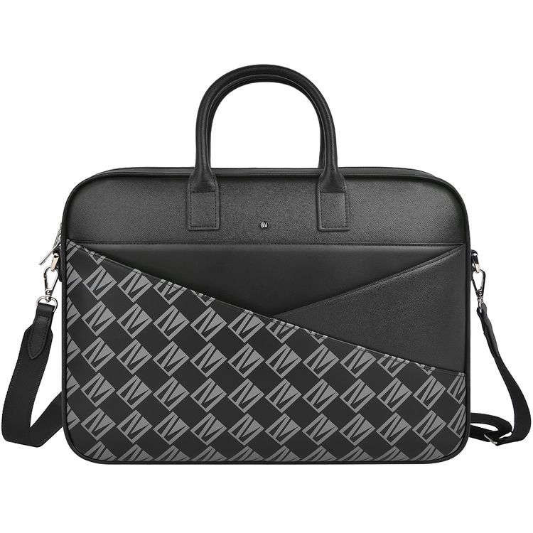 Levelo Belfort 16" Laptop Sleeve with LVL Signature Logo, Saffiano Leather Material, Water Resistant, Adjustable Shoulder Strap, Multiple Compartments, Carrying Handles - Black
