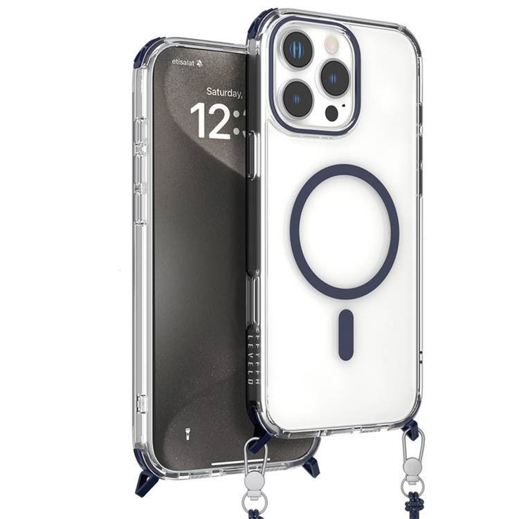 Levelo Celeste MagSafe Case with Crossbody Strap for iPhone 16 Pro, AirGuard Technology, Metal Hook, Durable Material - Deep Blue