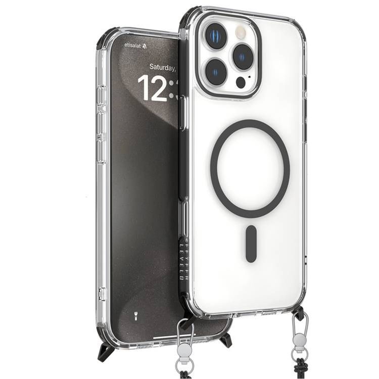 Levelo Celeste MagSafe Case with Crossbody Strap for iPhone 16 Pro Max, AirGuard Technology, Metal Hook, Durable Material - Black