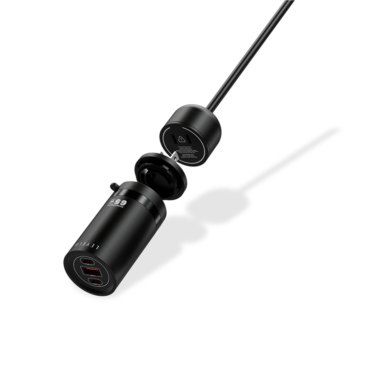 Levelo Charge Tower GaN Travel Adapter, Smart Power Distribution, Global Compatibility, Compact Power - Black