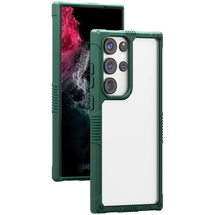 Levelo Clara Hybrid Clear Case for Samsung Galaxy S23 Ultra, Shockproof Edges, Anti-Fingerprint, Non-Slip Grip Lines, Camera Ring - Green