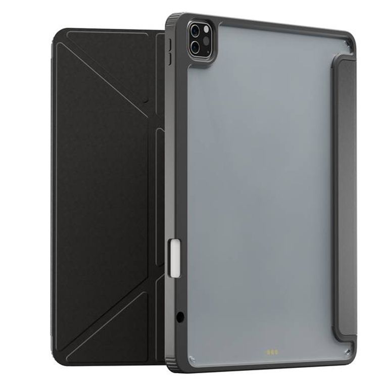 Levelo Conver Clear Back Leather Case for iPad Pro 11" (2024), Built-in Pen Slot, Accurate Cut-Outs, Easy Snap-On, 360° Protection, Vertical & Horizontal Positioning - Black