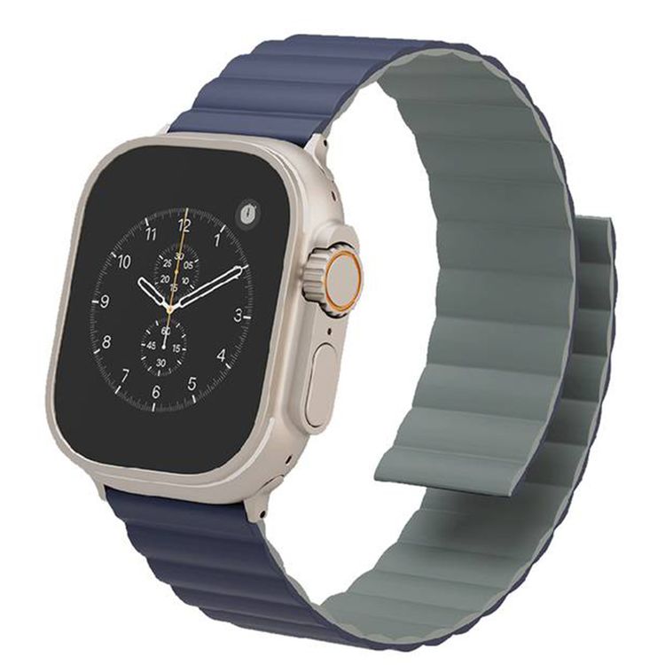 Levelo Cosmo Silicone Watch Strap with Magnet for Apple Watch 49/45/22mm, Hypoallergenic Material, Compatible with SE, Series 8, 7, 6, 5, 4 & 3, Detachable Interface, Dual-Color Design - Blue / Gray