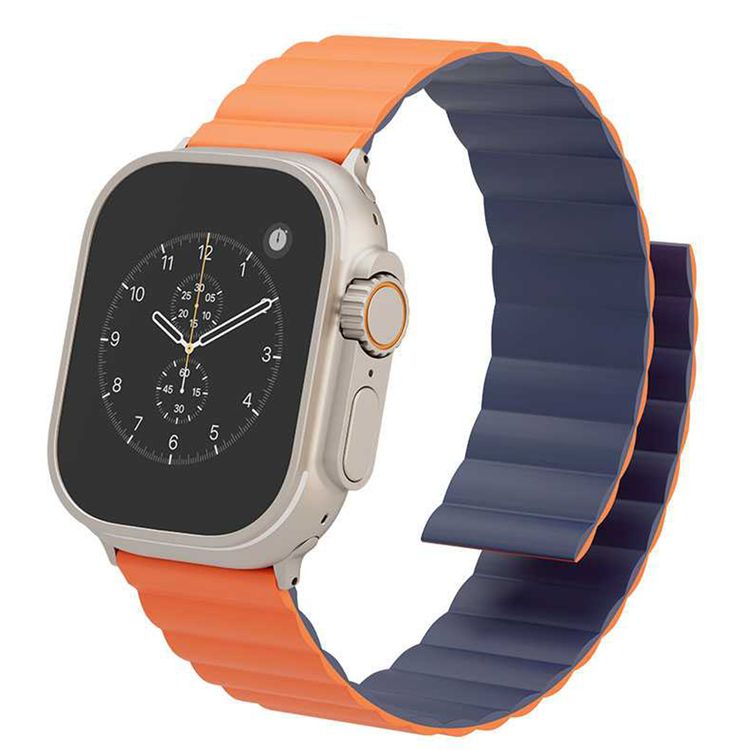 Levelo Cosmo Silicone Watch Strap with Magnet for Apple Watch 49/45/22mm, Hypoallergenic Material, Compatible with SE, Series 8, 7, 6, 5, 4 & 3, Detachable Interface, Dual-Color Design - Orange / Blue