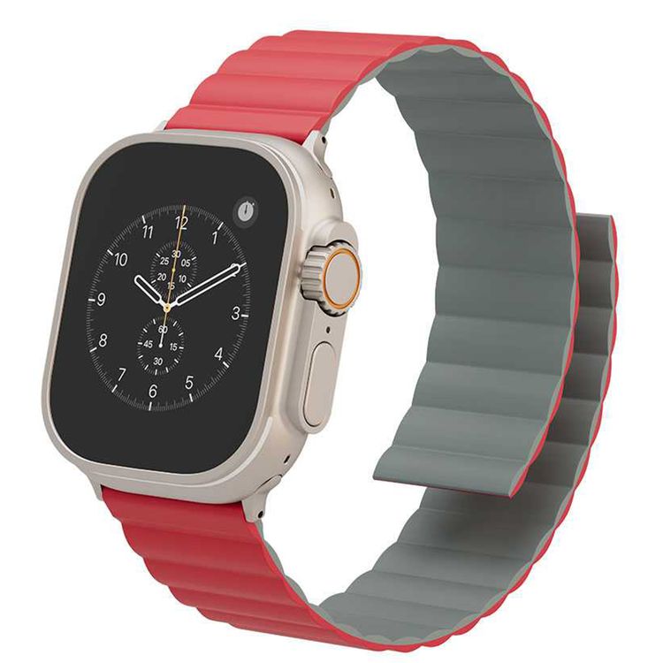 Levelo Cosmo Silicone Watch Strap with Magnet for Apple Watch 49/45/22mm, Hypoallergenic Material, Compatible with SE, Series 8, 7, 6, 5, 4 & 3, Detachable Interface, Dual-Color Design - Red / Dark Gray