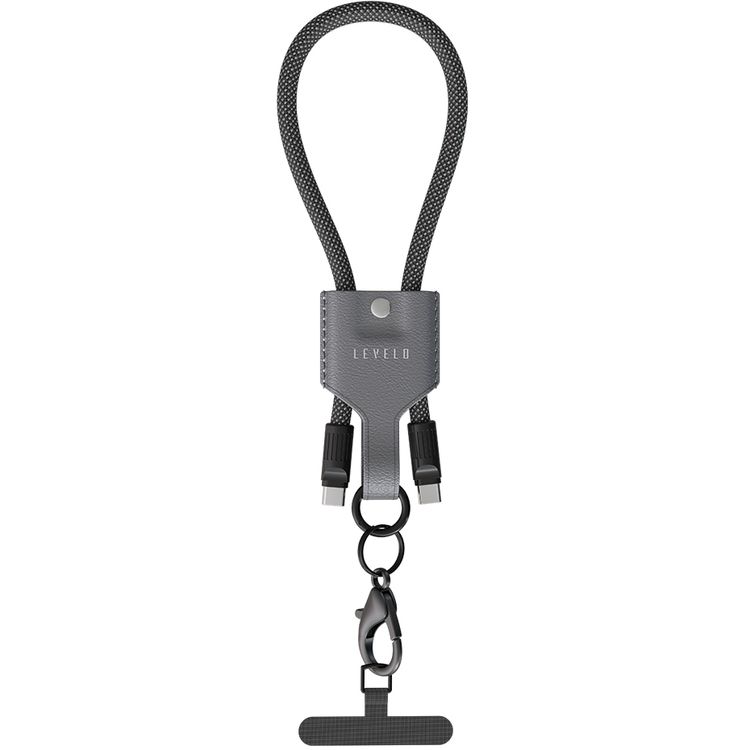 Levelo Tugo Type-C to Type-C 60W Lanyard Cable with TPE + Leather Material, 0.3m Cable Length, Data Transfer - Black/Gray