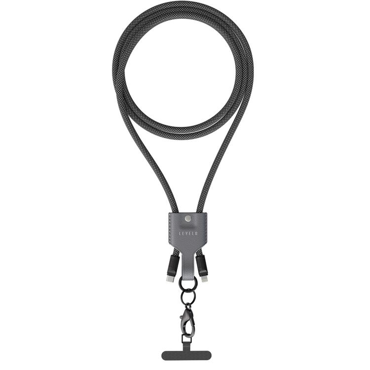 Levelo Tugo Type-C to Lightning 30W Lanyard Cable with TPE + Leather Material, 1m Cable Length, Data Transfer - Black/Gray