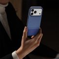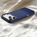 Levelo Cuir Leather Hybrid Case with Comfortable Grip for iPhone 17 Pro, Strong Magnets & MagSafe Compatible, Shock-Resistant Bumper, Aluminum Alloy Frame for Camera & Buttons, Drop-Tested - Midnight Blue