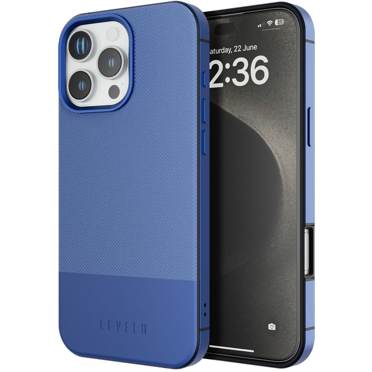 Levelo Cuir Two Tone Leather Case For iPhone 16 Pro, Durable, Compact Design, MagSafe Compatible, Hybrid Case, Impact-Resistant Corners , Aluminum Bumper Finish, High Quality Material - Blue