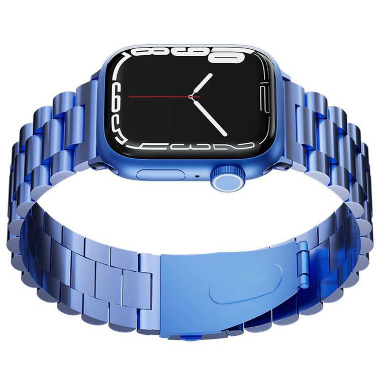 Levelo Daytona Watch Strap with Adjustable Links for Apple Watch 49/45mm, Anti-Oxidation Technology, Compatible with SE, Series 8, 7, 6, 5 & 4, Stainless Steel with Premium Metal Finish - Blue