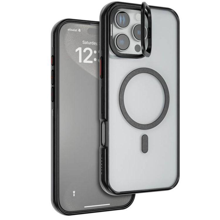 Levelo Elio PC Case with Camera Ring Stand for iPhone 16 Pro, Built-in Kickstand, MagSafe Compatible - Black