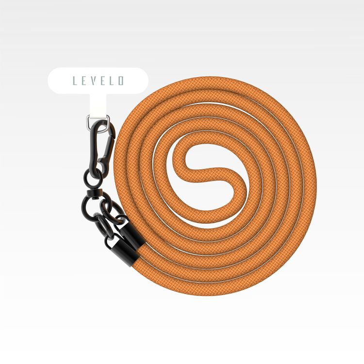 Levelo Everly Phone Crossbody Lanyard, 1.2m, Polyester Fiber, Metal Finish, Lightweight, Durable Material, Adjustable Straps, Universal Compatibility, Hypoallergenic Material - Carrot Orange