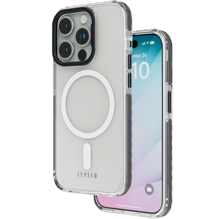 Levelo FlexiGuard MagSafe Transparent Case for iPhone 15 Pro, High Transparency Clear Back Cover, Shock Proof Edges, 3H Anti Scratch, MagSafe Compatibility, Bumper Protection, Metal Lifted Camera Ring - Black