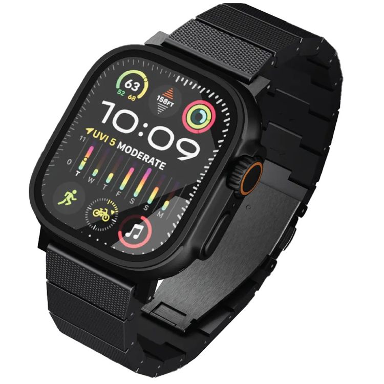 Levelo Fusion Resin Strap for Apple Watch 49/46 mm, Adjustment Tool, Hypoallergenic Material, Stainless Steel, Lightweight, Highly Durable, Anti-Oxidation Technology - Black
