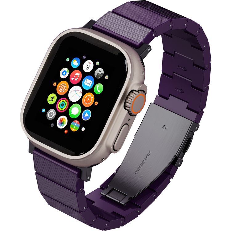Levelo Fusion Resin Strap for Apple Watch 49/46 mm, Adjustment Tool, Hypoallergenic Material, Stainless Steel, Lightweight, Highly Durable, Anti-Oxidation Technology - Purple