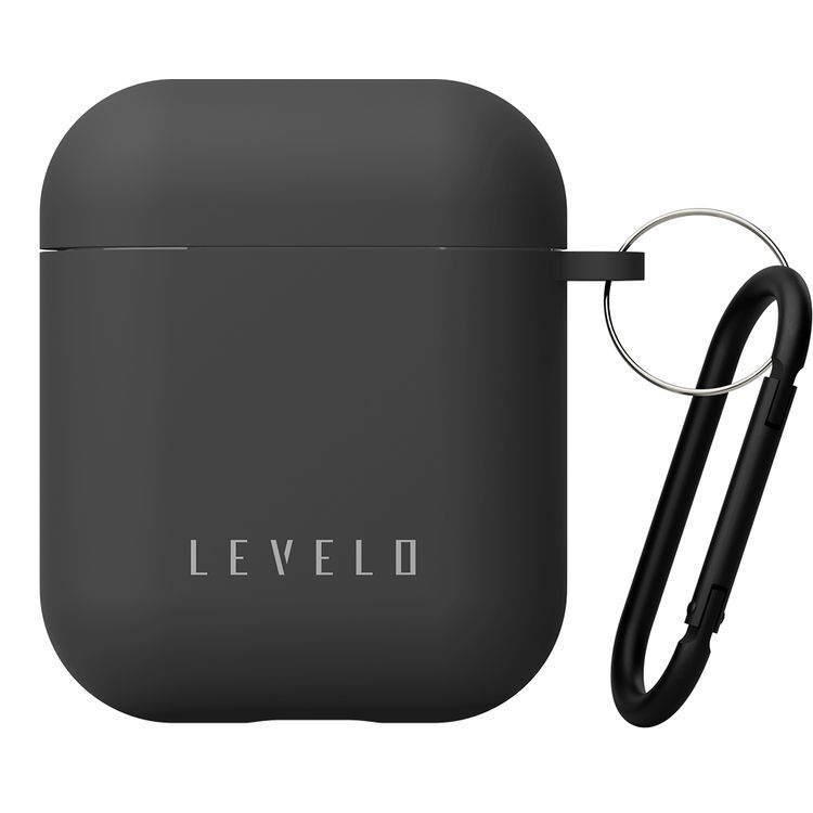 Levelo Gorra Hybrid Silicone AirPods 1 & 2 Case with Metal Carabiner, Shockproof, Slim & Thin Design, Lightweight & Slim, Easy Snap-On - Black