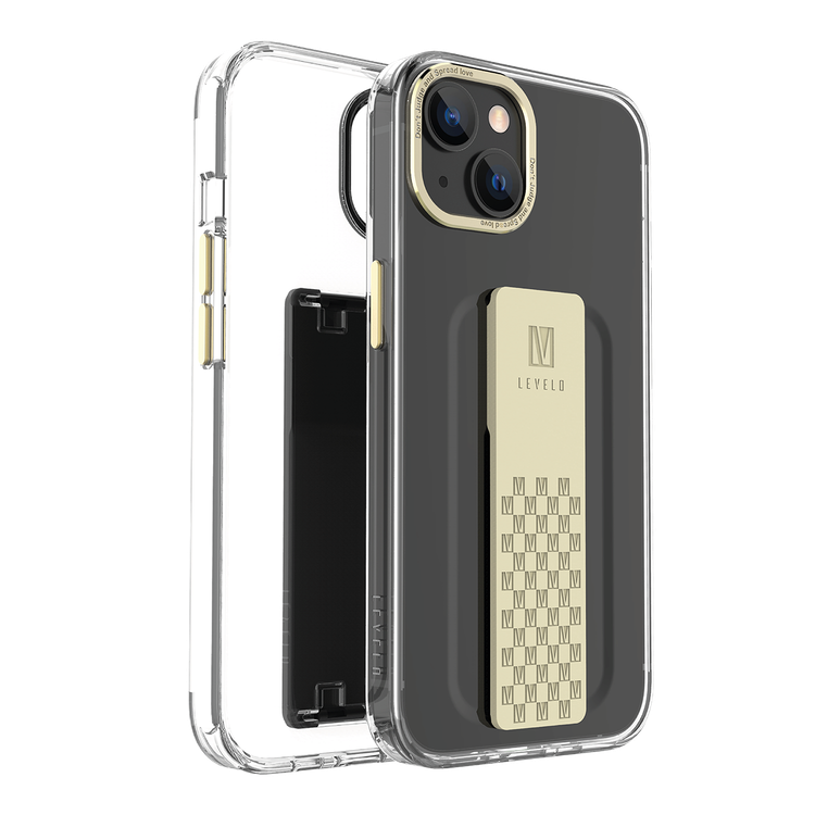 Levelo Graphia IMD Clear Case with Extra Grip for iPhone 14 Plus - Champagne