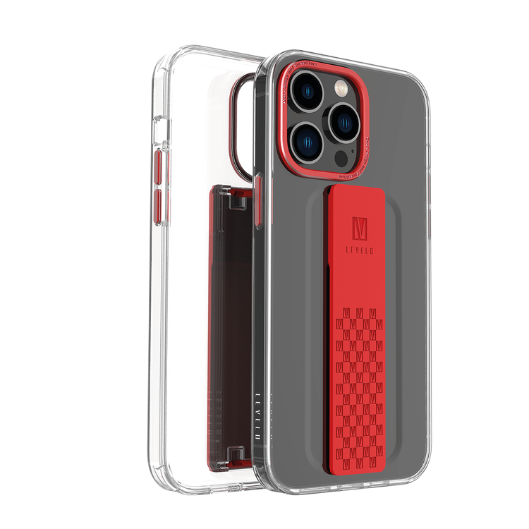 Levelo Graphia IMD Clear Case with Extra Grip for iPhone 14 Pro Max - Red